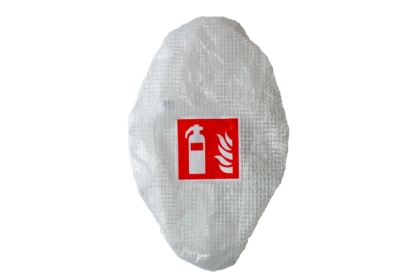 Stabile Gitterschutzhaube aus 100 % LDPE/HDPE. Ausgestattet mit aufgenähtem Feuerlöscher-Symbol (F 001 nach ISO 7010) für klare Kennzeichnung. / Material: LDPE/HDPE / Stärke 0,15 mm / mit Gummizug, Abwaschbar